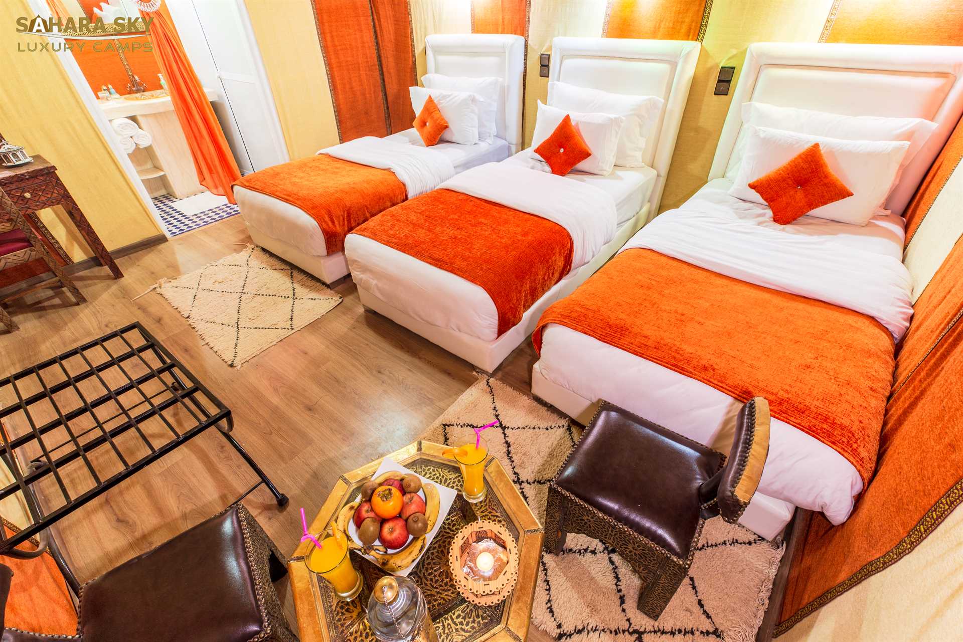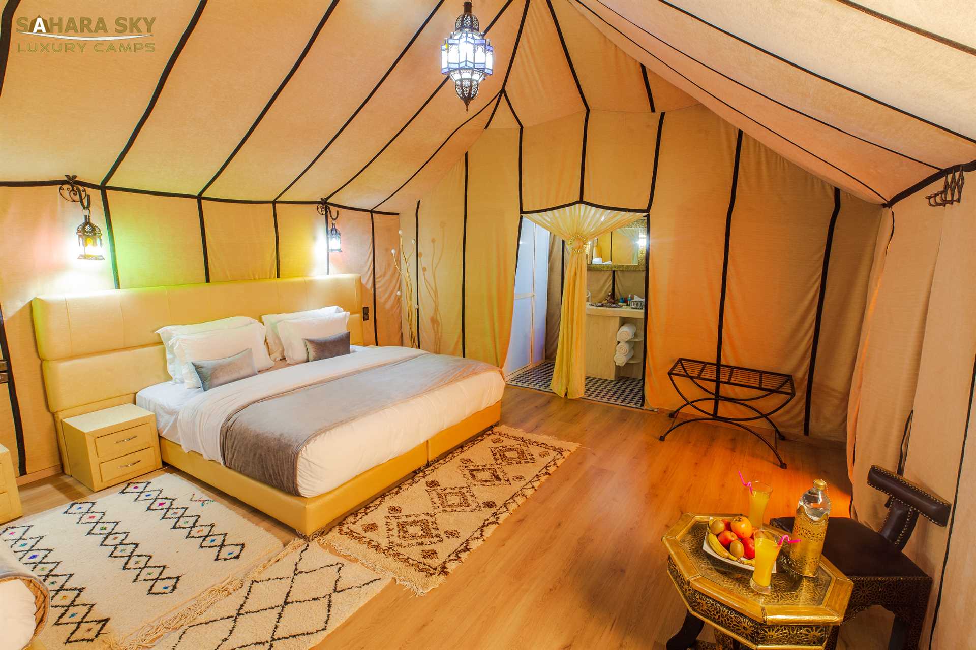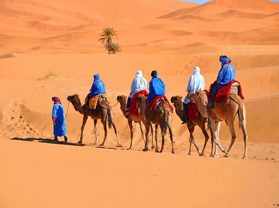 Overnight Camel trek Merzouga is an experience you will never forget it, Camel ride & spend a magical night in the deep desert in nomadic tents. Our Morocco camel trekking offers two camp options the Luxury & simple desert camp, excellent cuisine and sleeping in the desert beneath a stunning canopy of stars in our traditional nomadic bivouac.